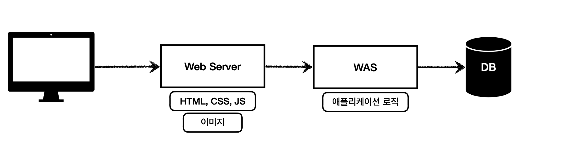 웹 서버는 정적 리소스(파일), WAS는 애플리케이션 로직