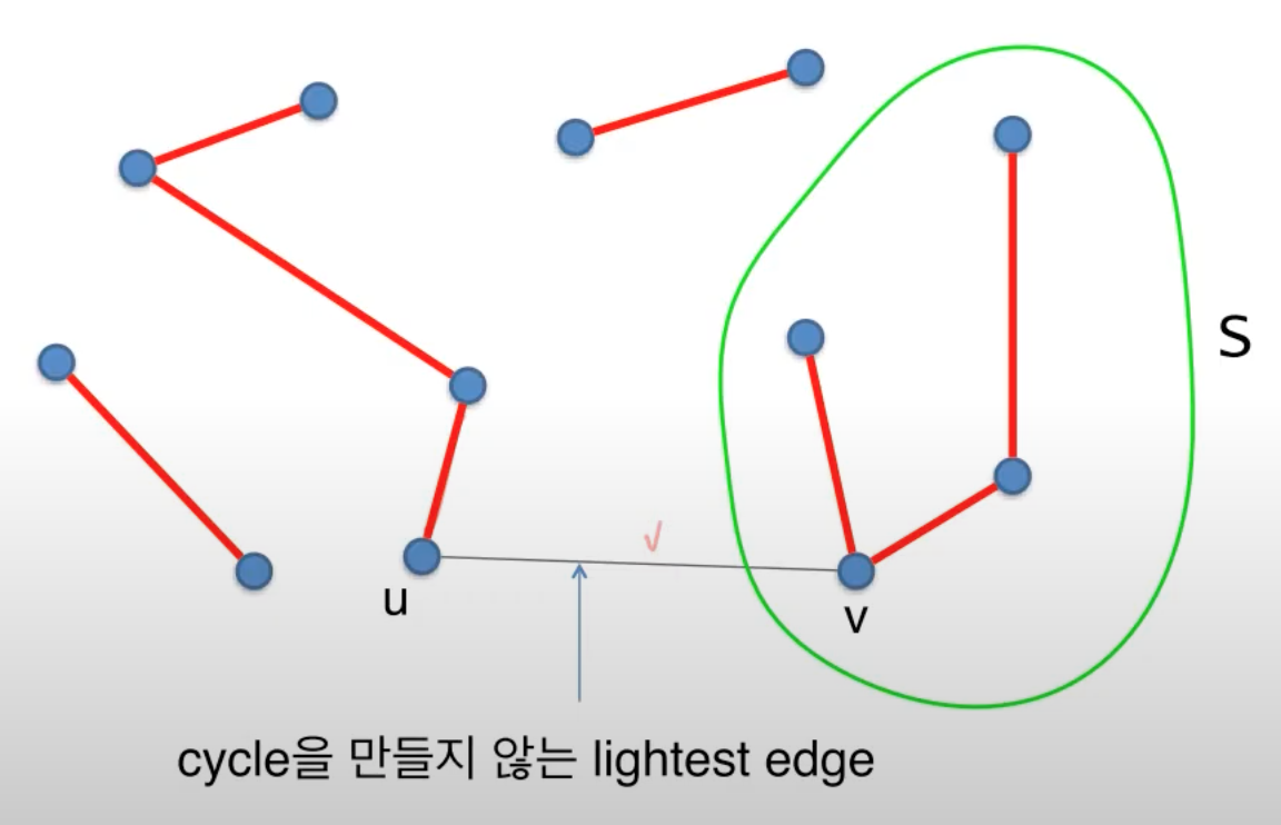 신장트리 신장 트리(spanning tree)란 그래프내의 모든 정점을 포함하는 트리다. 신장 트리는 트리의 특수한 형태이므로 모든 정점들이 연결되어 있어야 한다. 그래프에 있는 n개의 정점을 정확히 (n-1)개의 간선으로 연결하게 된다. 하나의 그래프에는 많은 신장 트리가 존재 가능하다. 싸이클이 없는 무방향 그래프 최소 비용 신장 트리 최소 비용 신장 트리는 신장 트리 중에서 사용된 간선들의 가중치 합이 최소인 신장 트리를 말한다. 최소 비용 신장 트리를 구하는 방법으로는 Kruskal과 Prim이 제안한 알고리즘이 대표적으로 사용되고 있으며, 이 알고리즘들은 최소 비용 신장 트리가 간선의 가중치의 합이 최소이어야 하고, 반드시 (n-1)개의 간선만 사용해야 하며, 사이클이 포함되어서는 안 된다는 조..